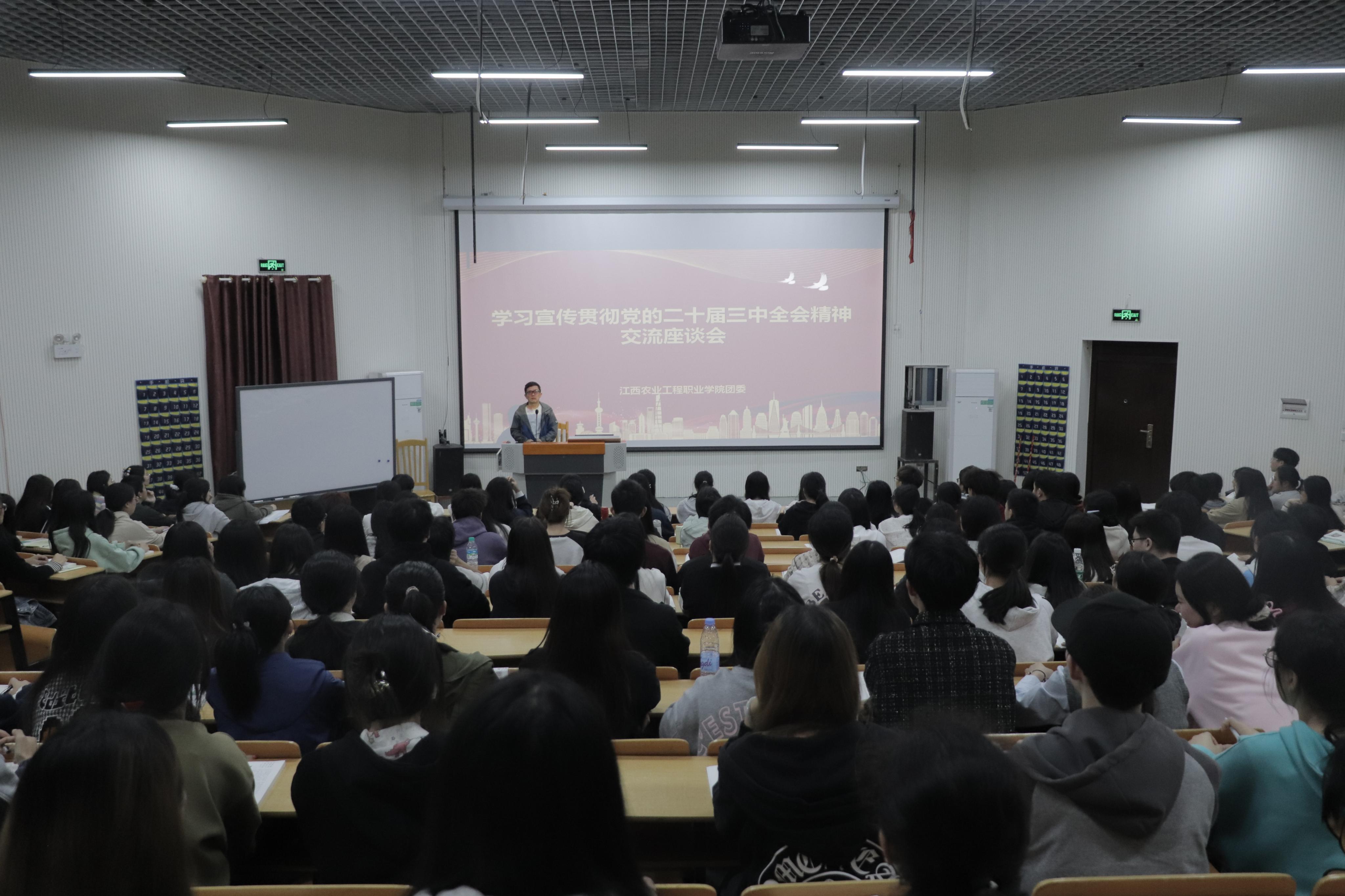 为深入学习贯彻党的二十届三中全会精神,10月28日江西农业工程职业学院团委在多功能报告厅成功举办了学习贯彻党的二十届三中全会精神交流座谈会。团委、各团总支和全校师生代表共150余人参加。