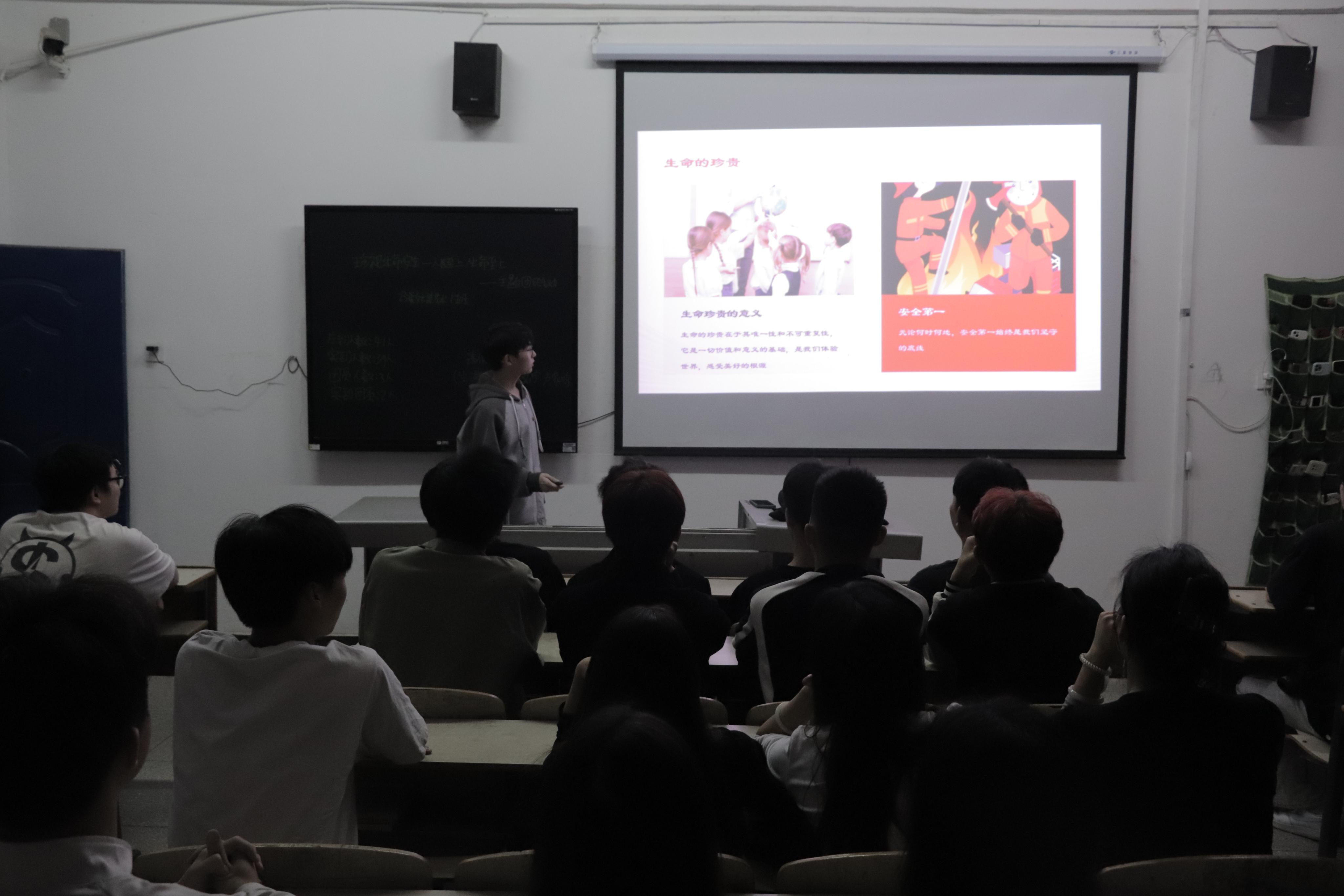 活动伊始,各班团支部书记带领大家一同观看了习近平总书记关于安全生产的重要指示精神视频,让大家更深入、系统地理解“人民至上 生命至上”的内涵。其次,各班团支部书记通过PPT讲解的方式,带大家深入了解各类灾害的特点和应对措施,加深了大家对安全知识的了解。最后,大家以小组为单位开展了安全知识问答环节,问答内容涵盖了交通安全、消防安全、用电安全等多个方面,题目设计既贴近生活又富有教育意义。同学们在活动中积极思考,踊跃回答,现场气氛活跃,有效增强了大家的安全意识,一定程度上提高了大家的安全防范能力。