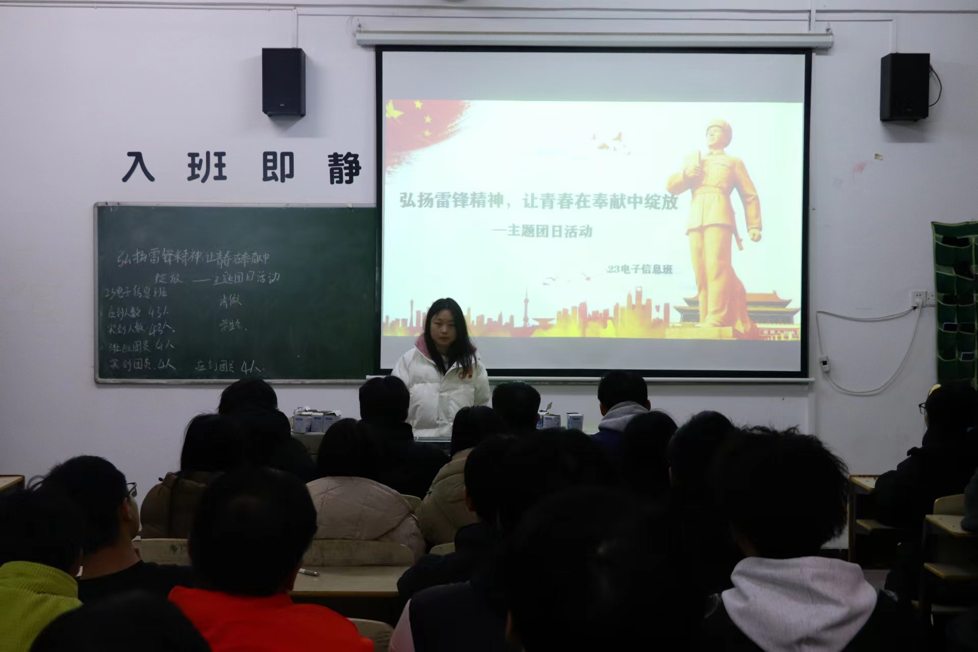 活动中,各班团支部书记用生动的语言讲述雷锋故事,让团员青年们深刻体会雷锋精神的内涵。接着各班团支部书记以PPT讲解形式,从“保护母亲河争当‘河小青’”、“情暖童心爱在身边”、“情暖社区志愿同行”、“青春护绿你我同行”等方面介绍应如何开展志愿服务活动。活动结束,团员青年们表示要将雷锋精神内化于心、外化于行,以实际行动践行雷锋精神。