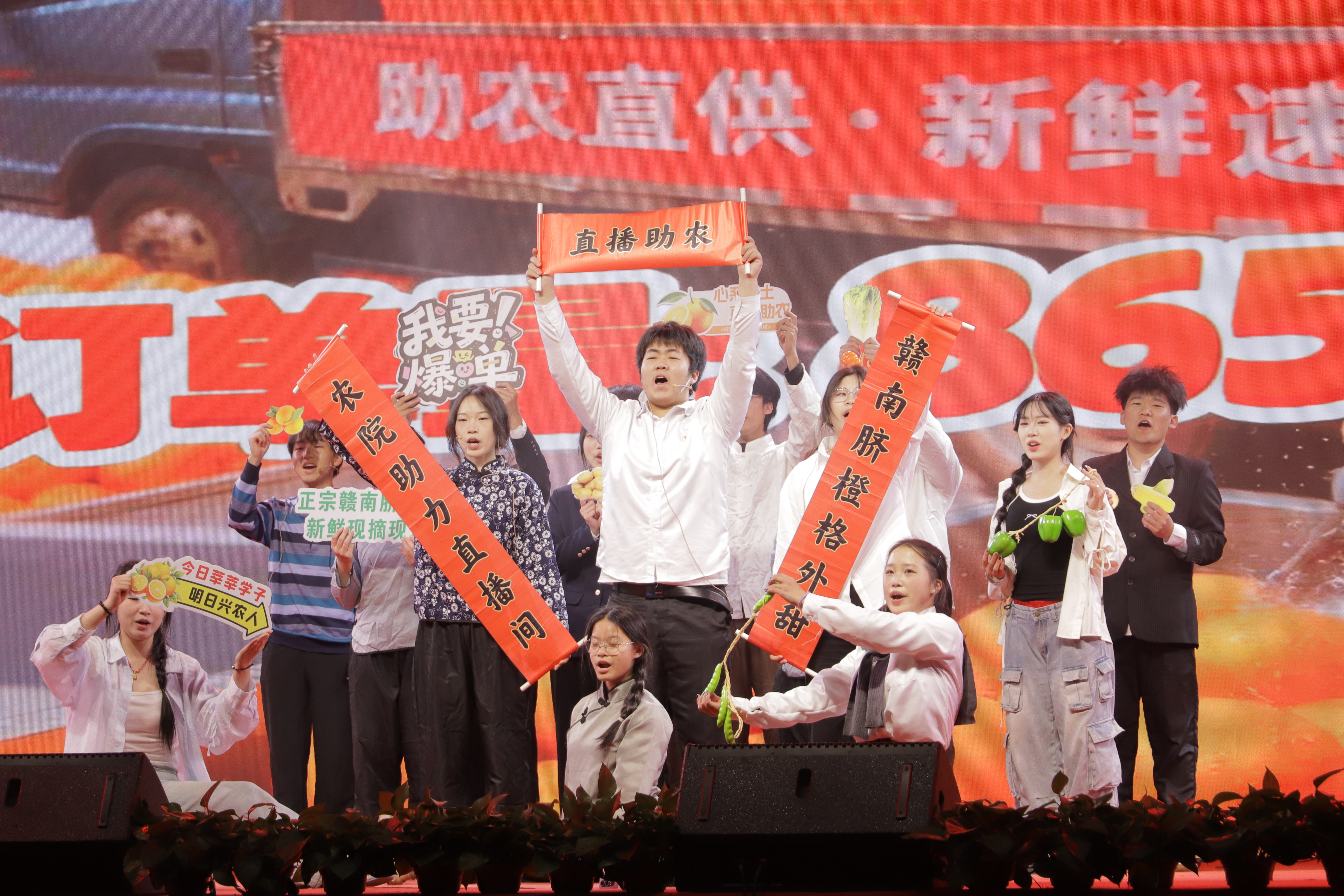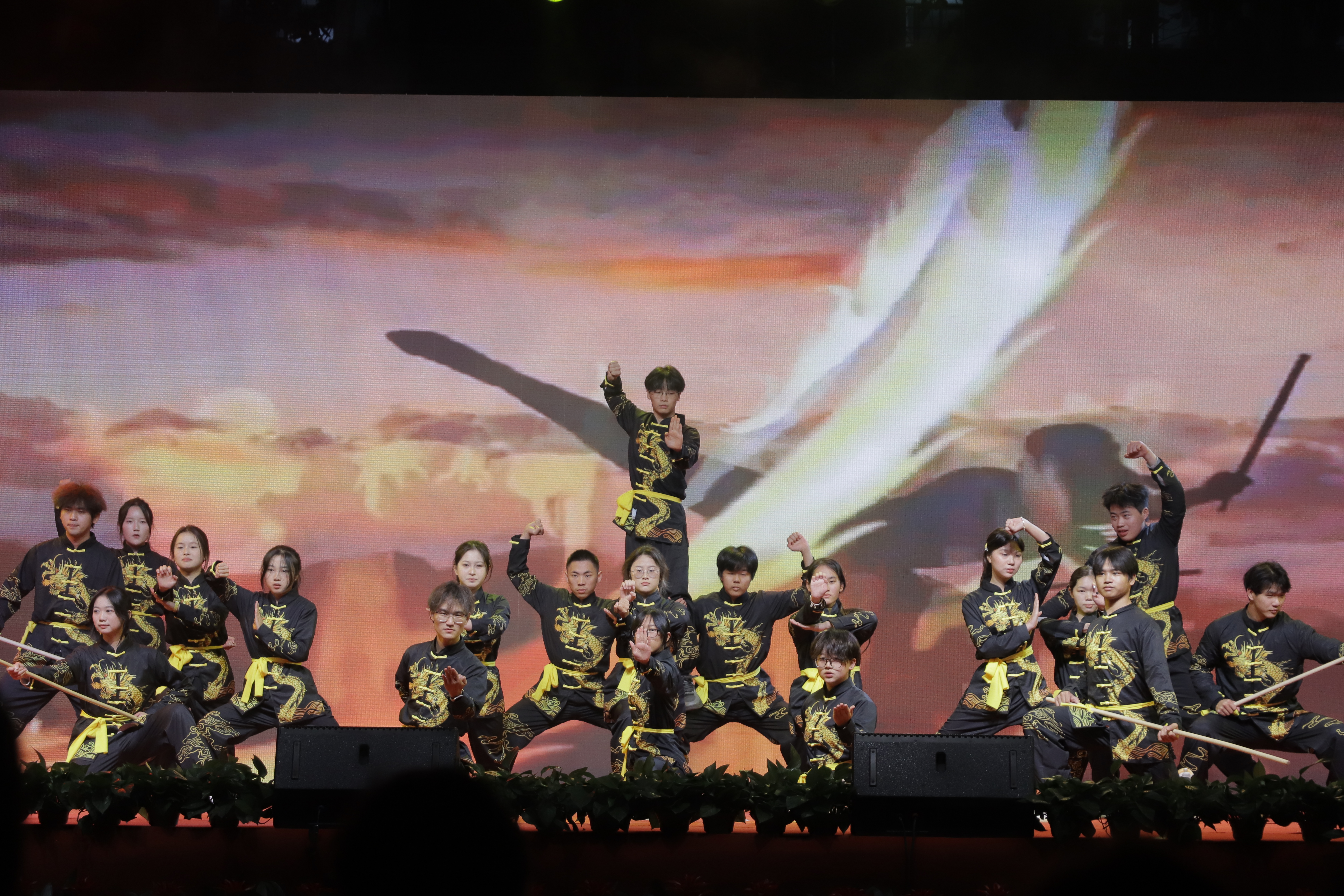 晚会正式拉开帷幕。开场乐队演奏瞬间点燃了现场氛围,动感的旋律与铿锵的节奏勾勒出青春的蓬勃朝气;走秀、对唱、合唱、武术等多元节目轮番上演,参演者以精湛的表现展现了我校学子的综合素质,现场洋溢着欢乐热烈的气氛。其中,情景剧与舞蹈融合的《清风拂橙红》以新颖的艺术形式讲述了动人的故事,在光影交错间传递出扶贫助农的艰辛;《薪火继五四》通过深情演绎致敬五四先驱,让五四精神在校园中薪火相传;《觉醒》以铿锵有力的朗诵传递青年理想信念,彰显了新时代大学生的责任与担当。精彩的表演多次将现场气氛推向高潮,革命精神、传统文化与社会主义核心价值观在舞台上有机融合,深深触动了在场师生。