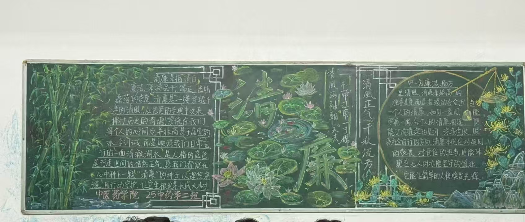 为进一步培育学生的诚信廉洁观念,助力学生达成全面成长与成才之目标,近日,学院团委特开展以“清风伴我行,廉洁驻我心”为主题的黑板报评比活动。