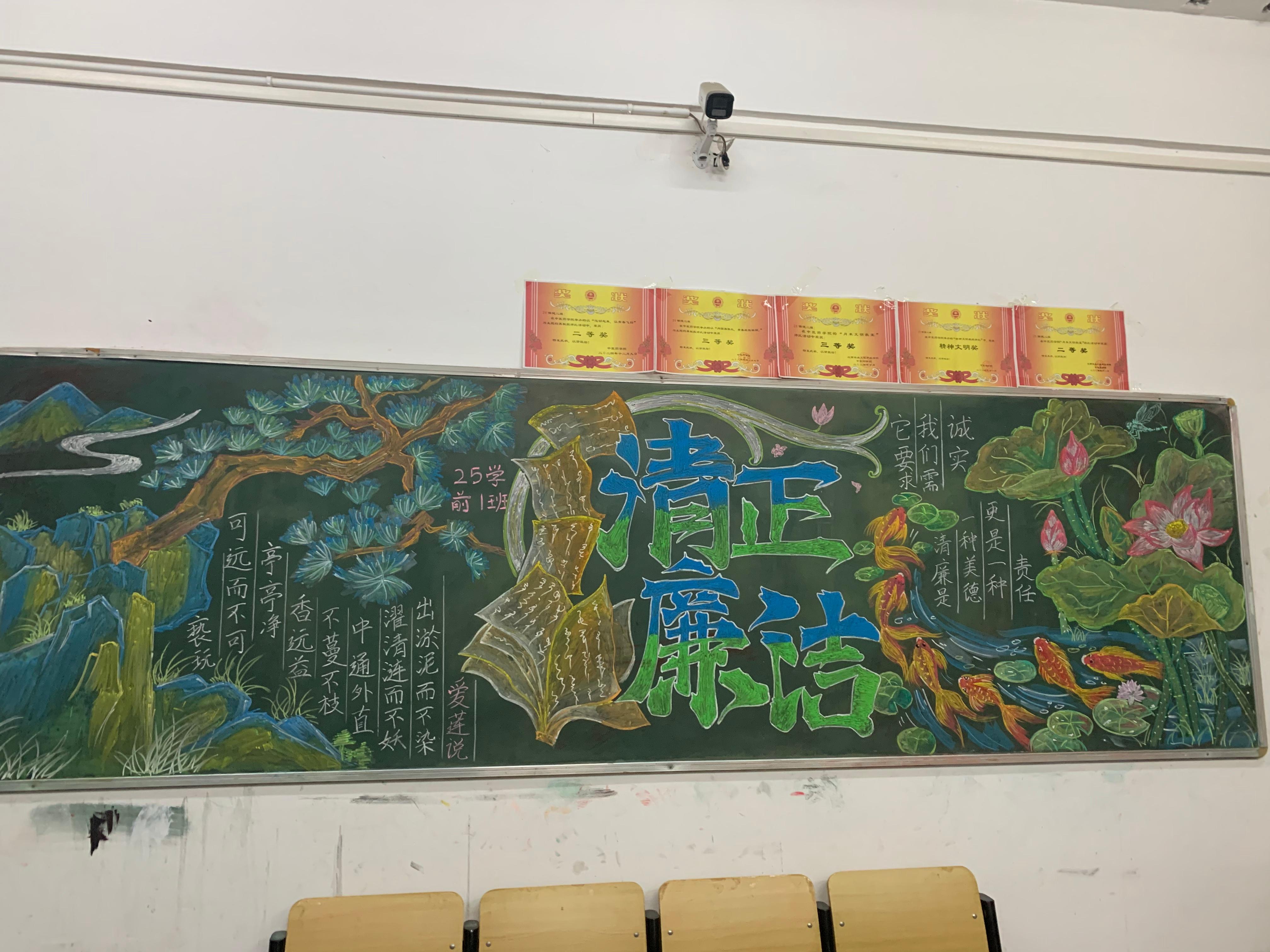 活动期间,各班级同学均进行了精心筹备,从整体构思到版面规划,从色彩调配到文字书写,每一处细节皆凝聚着集体的智慧与汗水。同学们以黑板报为媒介,将诚信理念诉诸笔墨,使廉洁精神融入色彩之中。图文之间,传递出对清廉品格的向往;方寸之内,彰显出对廉洁风尚的践行。此次活动生动展现了青年一代的廉洁意识与责任担当。