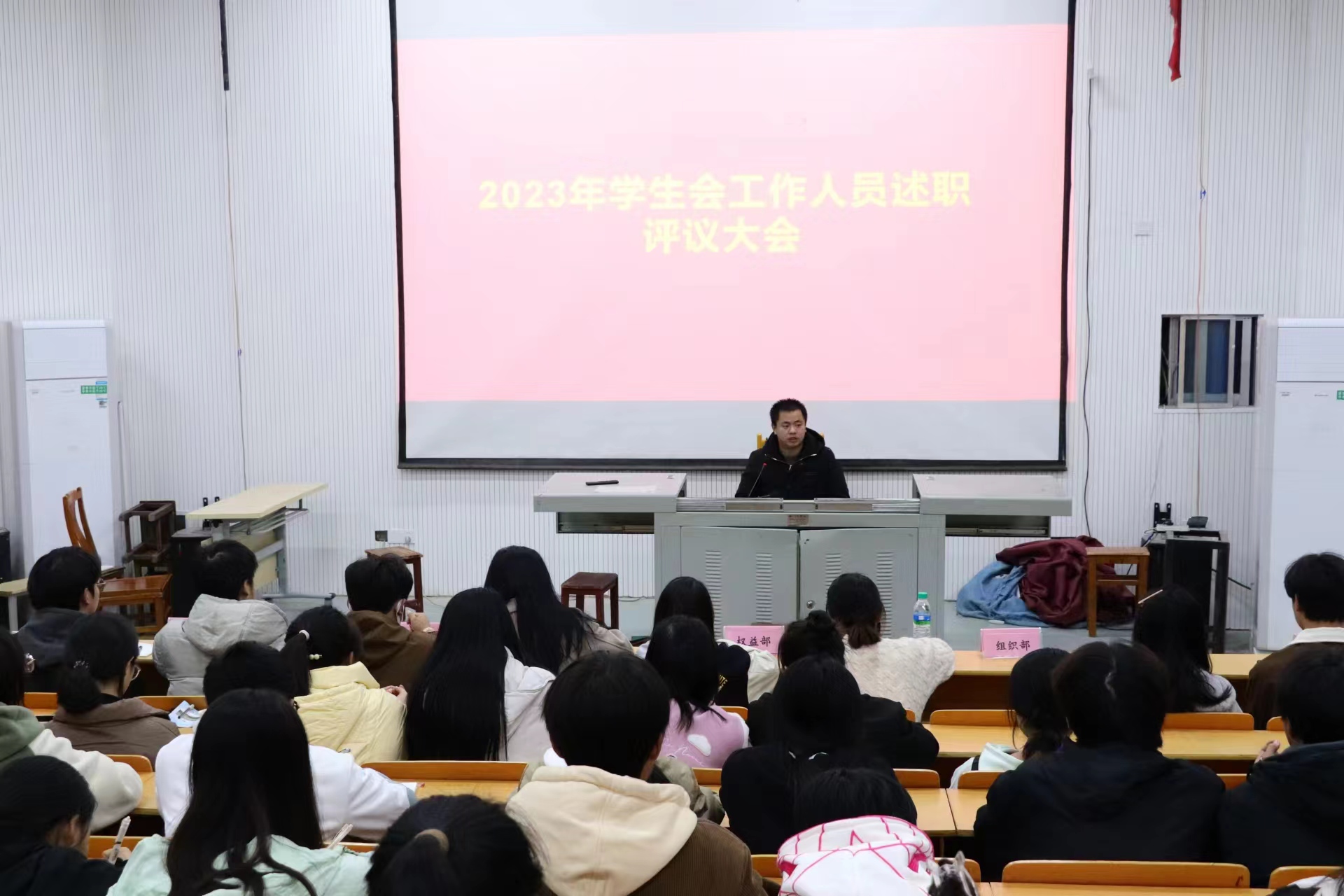 为进一步深化学生会改革,完善维护学生权益的组织化渠道和机制,支持和引导学生会更好地服务青年学生成长成才,推动学校高质量发展,学院团委于2023年11月16日在第一多媒体教室组织召开了学生会工作人员述职评议会。校团委老师、学生会主席团成员、各部门负责人及学生会工作人员出席会议。
