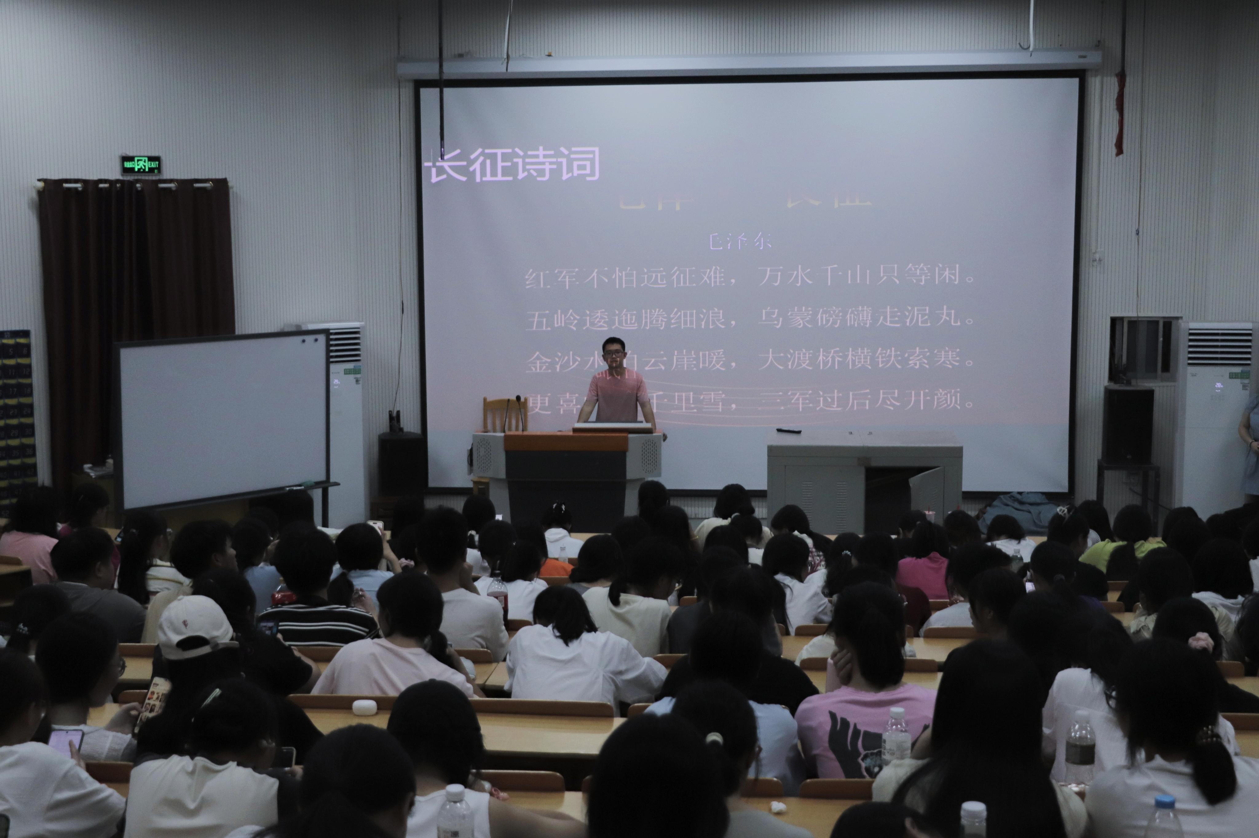 宣讲会上,宣讲团成员们组织同学们集体学习了习近平总书记关于长征的重要讲话,讲话中强调了党的重要领导地位以及高度赞扬了红军战士们艰苦奋斗的精神,使大家深刻体会到红军长征的重大意义。接着,宣讲团成员们化身为历史的讲述者,将一个个感人至深的长征故事娓娓道来,其中项与年同志穿越重重封锁将情报送到周恩来手中并解救中央红军的故事让大家印象最深刻,让大家感受到了长征英雄的伟大。最后,宣讲团成员们组织大家学习了长征的有关诗词,并演唱了长征的经典歌曲,使大家在重温红色经典中认识到了长征的不易,激励大家要弘扬不屈不挠的精神。宣讲会现场,宣讲团成员们用感人的故事、多样的活动形式深深吸引着同学们,大家也认真聆听,踊跃参与,用实际行动诠释了新时代青年的责任与担当。