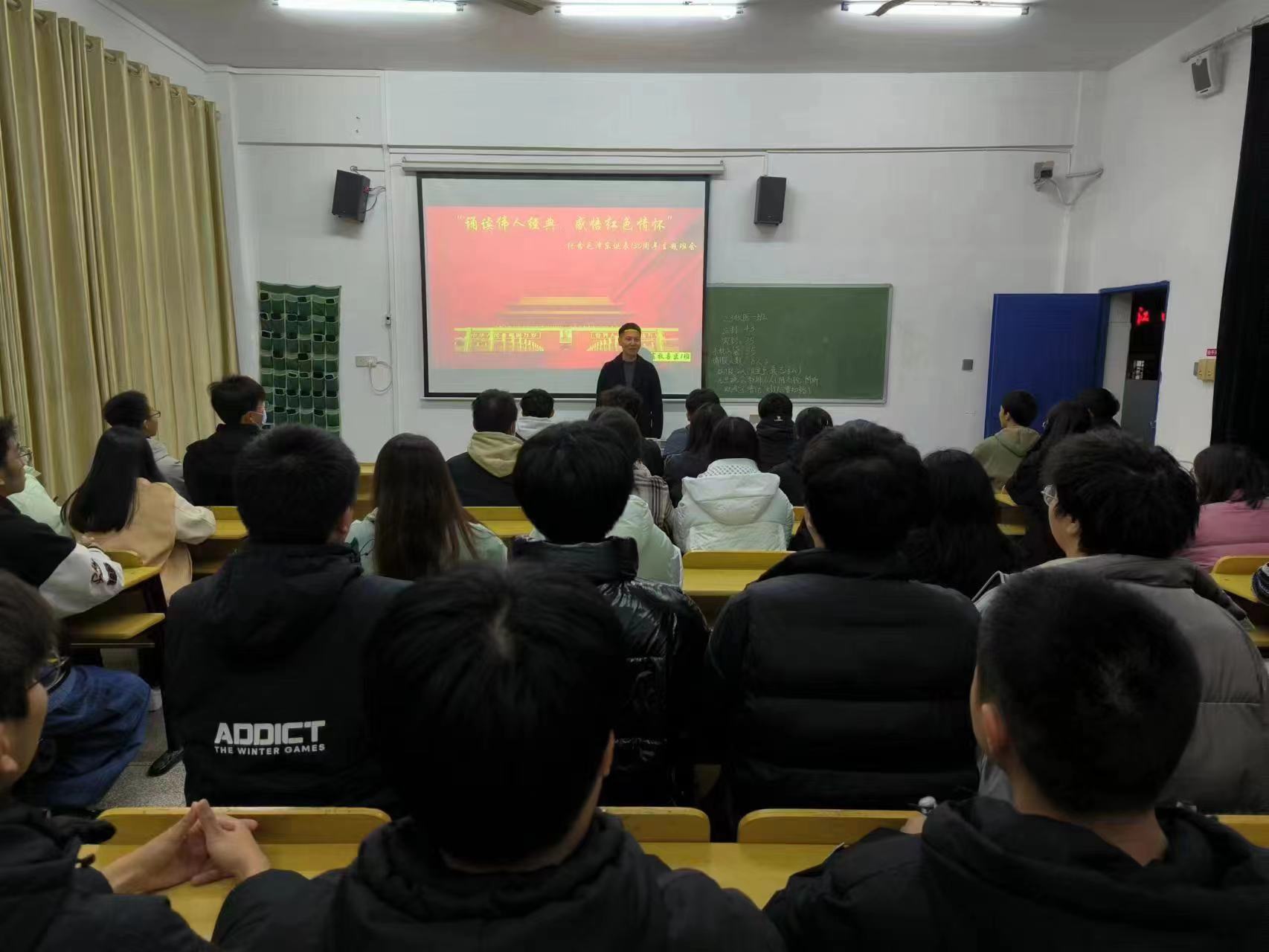 为纪念毛泽东同志诞辰130周年,大力弘扬爱国主义精神,传承红色基因。2023年12月10日至11日,我院组织各班级开展纪念毛泽东诞辰130周年主题班会活动。