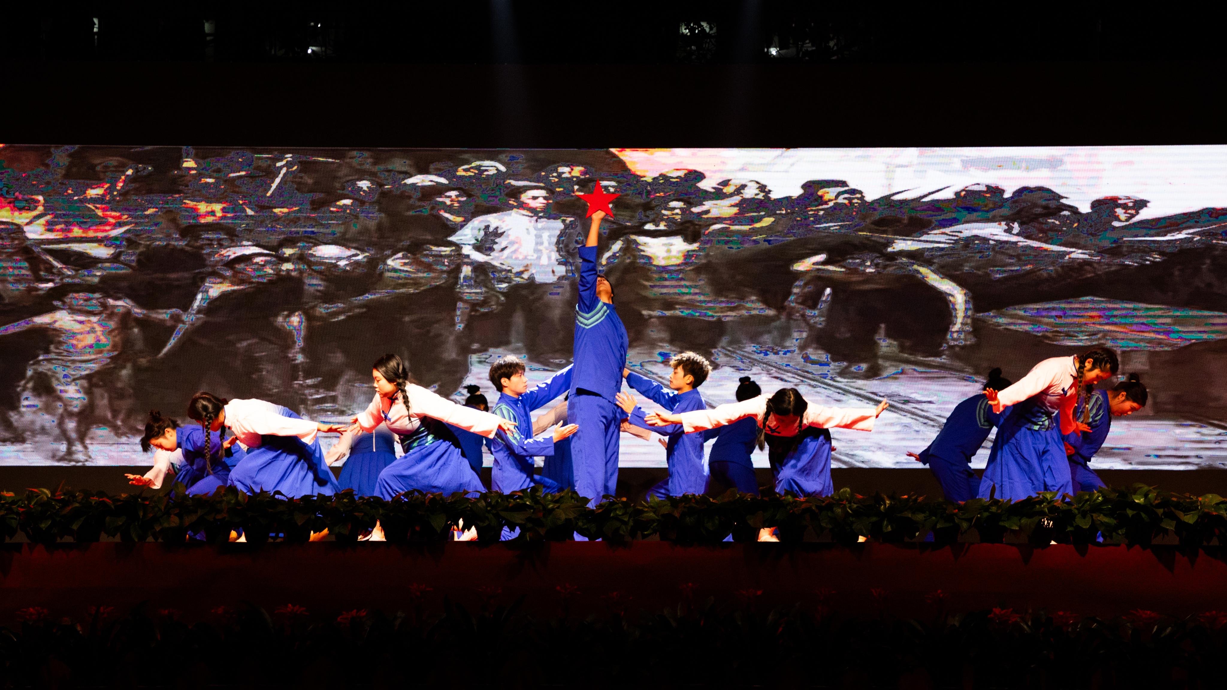 晚会节目精彩多样,由各分院和各社团精心选送。舞台上,姿态优美的古风舞蹈翩翩起舞,活力四射的街舞说唱激情四溢,人气极高的乐队演奏震撼人心,妙趣横生的反诈情景剧引人深思。此外,还有走秀、合唱、武术等各类节目轮番上演,演员们尽情展现青春活力,为现场师生献上了一场难忘的视听盛宴。其中《觉醒年代》《如愿》《我爱你中国》等节目呈现了新时代在党的领导下走向民主富强的历程。《纸约华裳》《飞天》《国韵华章-如梦令》等节目展示了汉服、剪纸、诗词等宝贵的非物质文化遗产。现场反响热烈,掌声雷动,不绝于耳。较好地传承了革命精神和优秀传统文化,同时弘扬了社会主义核心价值观。