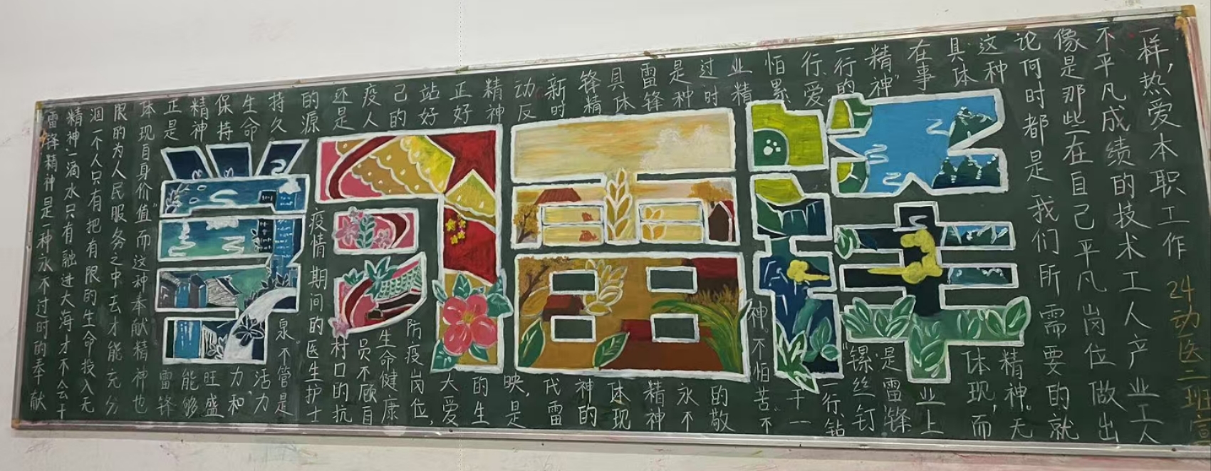 为弘扬雷锋精神,传承中华民族传统美德,引导广大青年学生积极投身志愿服务,营造文明和谐、积极向上的校园氛围,学院团委于3月组织开展“雷锋精神永放光芒”主题黑板报评比活动。