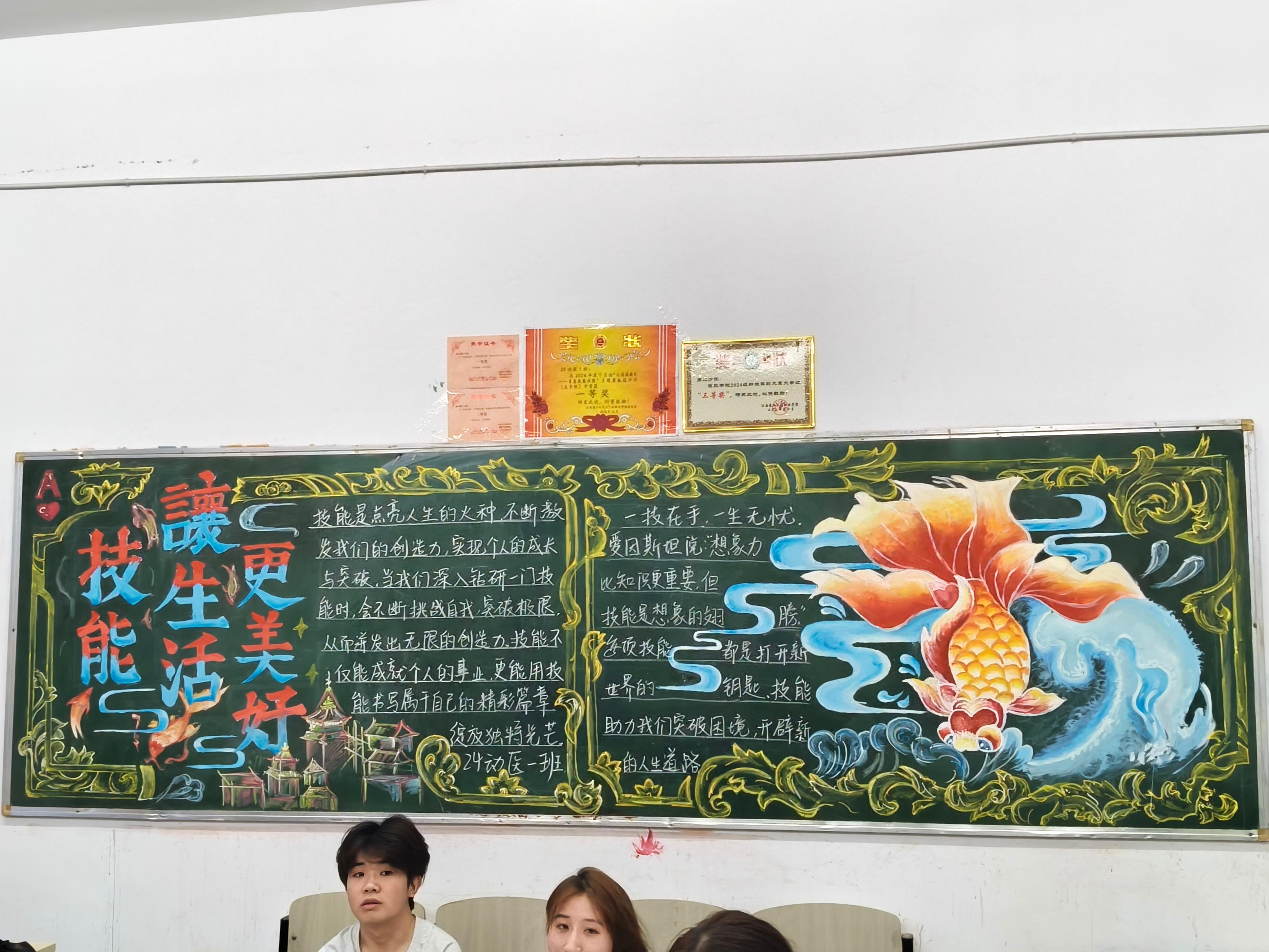 在此次活动中各班积极响应,精心设计,紧扣“技能成就精彩人生”主题,以精湛的绘画技艺,新颖的版面设计和深刻的内容表达诠释了对“技能成就精彩人生”的理解。以创意与技艺碰撞出青春的火花,展现了新时代青年的匠心风采。经过评比,最终结果如下:大专组:一等奖24动物医学1班、24汽车制造1班、24学前教育2班。二等奖:24中草药1班、24托育班、24植物保护2班、24休闲农业班。三等奖:24汽车制造2班、24园林技术班、24数媒技术班、24学前教育3班、24中药学1班。中专组:一等奖:24五年牧医2班。二等奖:24五年数媒艺术班。三等奖:24五年制药2班。