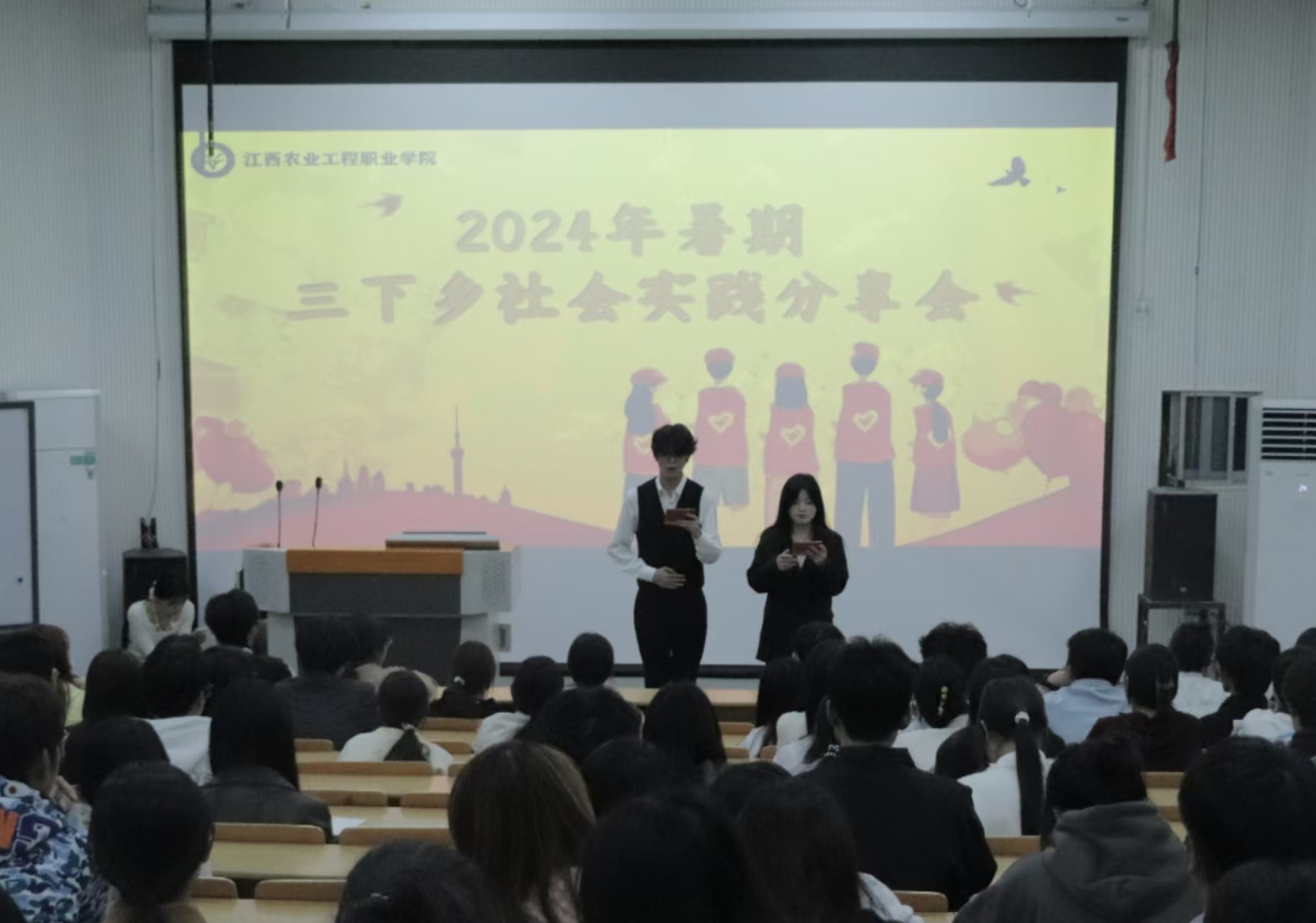 为贯彻落实习近平总书记关于青年工作的重要思想,引领广大青年积极践行社会实践活动,激发学生参与社会实践的积极性和主动性。学院团委于10月31日在第一多媒体举行2024年暑期“三下乡”社会实践交流分享会。