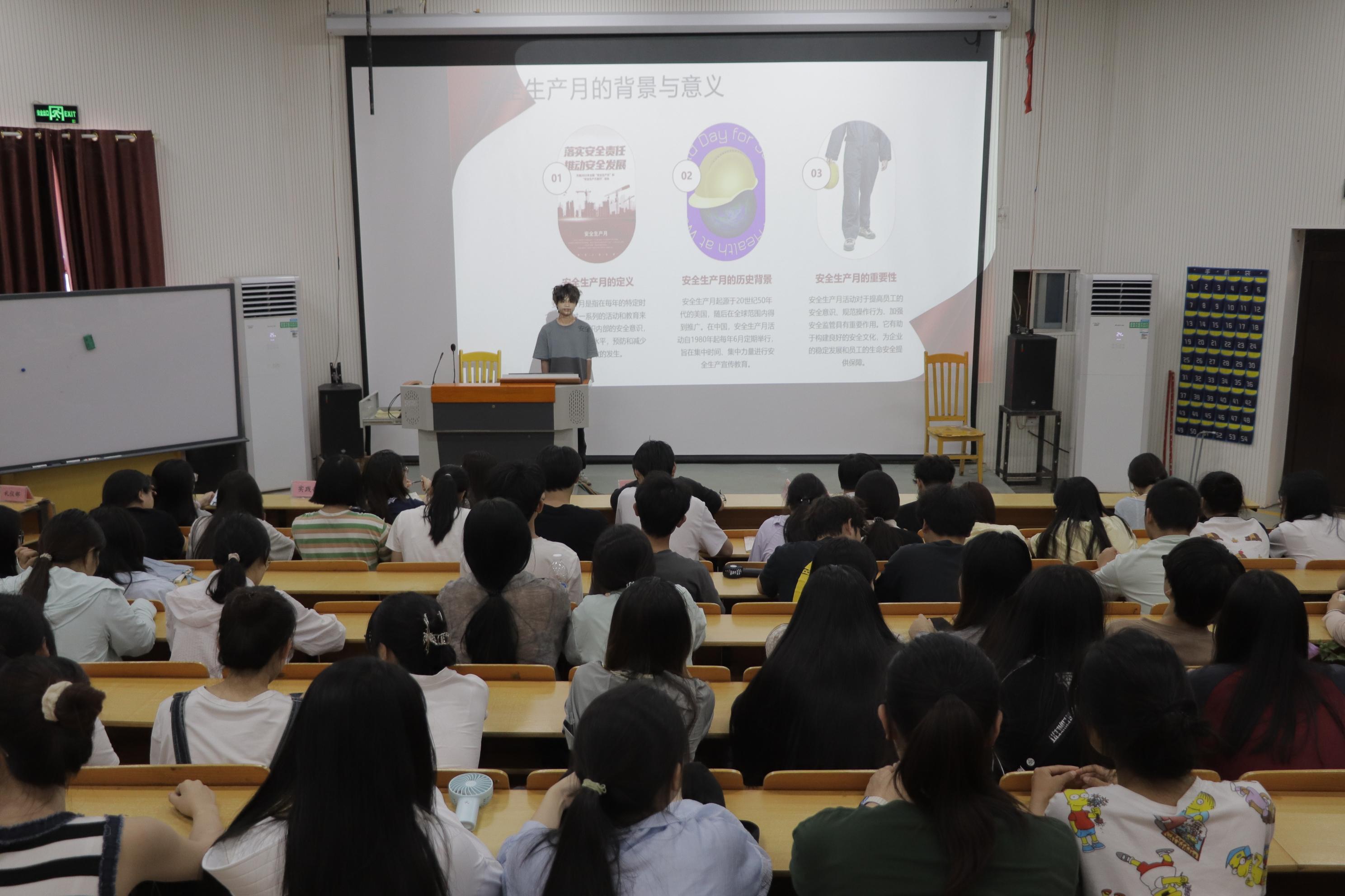 讲座伊始,主讲人结合高校真实案例,围绕人身安全、财产安全、交通安全、消防安全、实验室及实习实践安全、公共卫生安全等展开深入剖析,让同学们深刻了解到安全生产月在预防安全事故中的重要性。随后,主讲人强调身边的安全隐患要及时排查,并告诉大家一些查找安全隐患的方法和改正与应急措施,帮助大家了解到正确的排查方法,以及面对危险时应采取的正确应对方法。最后,主讲人播放了一些安全事故的视频,将那些常发生易发生的安全事故以更加直接主观的方式展现出来,让同学们更直观地感受安全教育的重要性和学习应急避险能力的必要性。