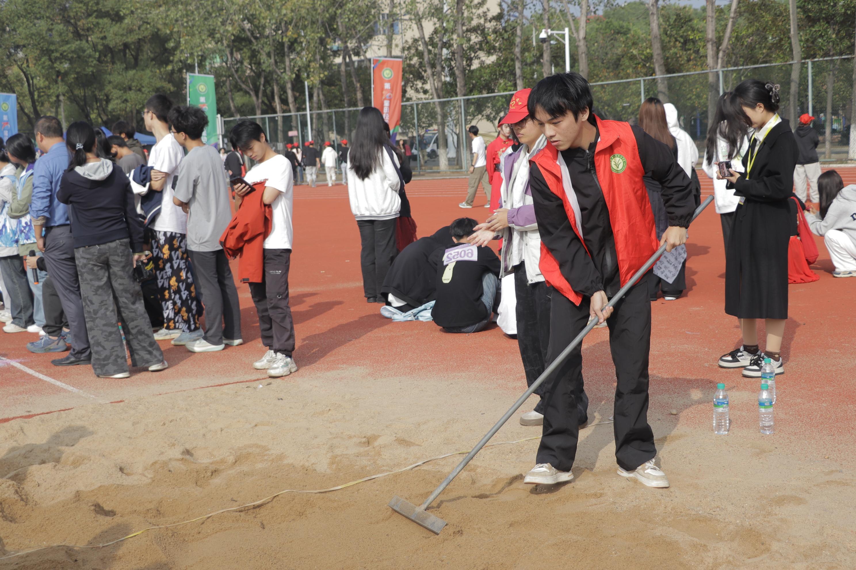 每逢比赛前夕,志愿者们便早早地来到田径场,协助裁判们整理物资、布置场地,确保赛前准备工作万无一失。赛场上,运动员们在跑道上奋力拼搏,志愿者们也在各自的岗位上默默“奔跑”:在跳远沙坑旁,他们及时平整沙面,为运动员的腾跃提供安全保障;在赛道边,他们耐心引导、维护秩序,助力运动员的每一次全力冲刺;在投掷场侧,他们精准记录落点、严谨测算距离,保障赛事规范有序,以微笑与专业贯穿服务始终。他们怀揣着细心、耐心与责任心,有条不紊地完成每一项任务。认真负责,是他们对待赛事的态度;那一声声感谢、一次次认可、一场场比赛的顺利推进,便是他们最宝贵的奖赏。即便身心疲惫,他们仍竭尽全力为比赛保驾护航,以坚守换来了运动会的圆满成功。田径场上,运动员奋力奔跑的背影与志愿者默默忙碌的身影交相辉映,构成一幅动人的画卷,在其中,学生们既看到了速度,也感受到了温情。或许,青春的最佳证明并非仅限于比赛中所获得的奖牌,更在于那份坚持不懈、持之以恒的人生信念。