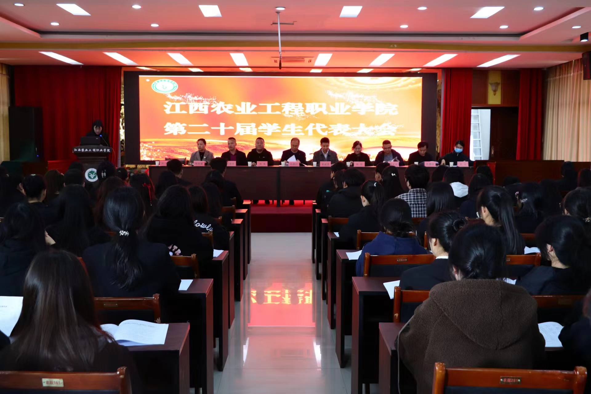 2023年11月24日14:00,江西农业工程职业学院第二十届学生代表大会在多功能报告厅隆重召开。学院党员委员 副院长吕湘江出席并致开幕词,学工处和团委有关同志、各分院党支部书记、团总支书记以及160名学生代表参加此次大会。