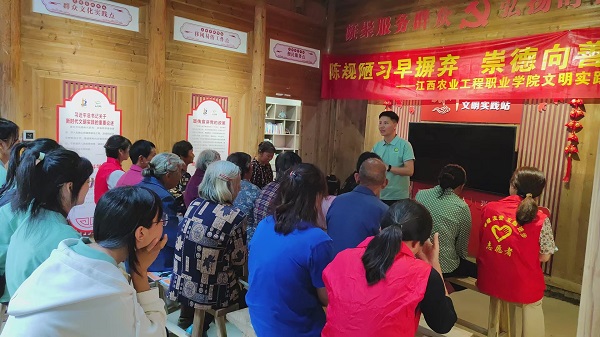 6月26日,学院学工处积极响应“强国有我,青春有为”暑期社会实践活动的号召,一支由8名大学生文明劝导队队员组成的志愿服务队,在指导老师的带领下,踏上了前往丰城白土镇新时代文明实践站的征程,开启了文明实践志愿服务行动,旨在通过移风易俗宣传和中老年人身心健康知识普及,为乡村振兴贡献力量,用实际行动展现新时代青年的责任与担当。
