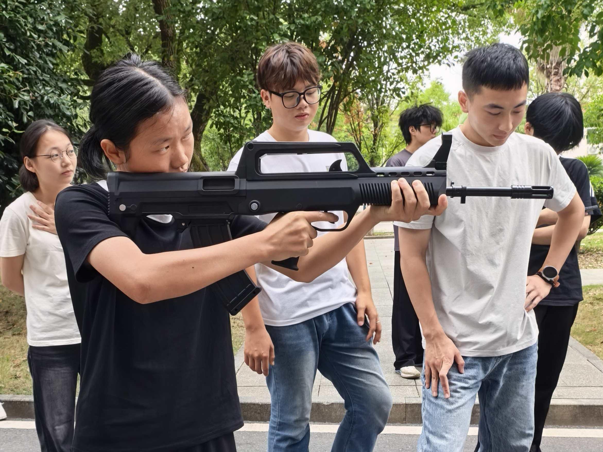 在随后进行的射击体验环节,在教师指导下,新生认真学习武器操作与安全规范,并有序进行实操练习。大家在亲身实践中感受军事技能的魅力,体会到军人训练的严谨与艰苦,进一步激发了对国防事业的崇敬之情,同时也为即将到来的军训做好准备。
