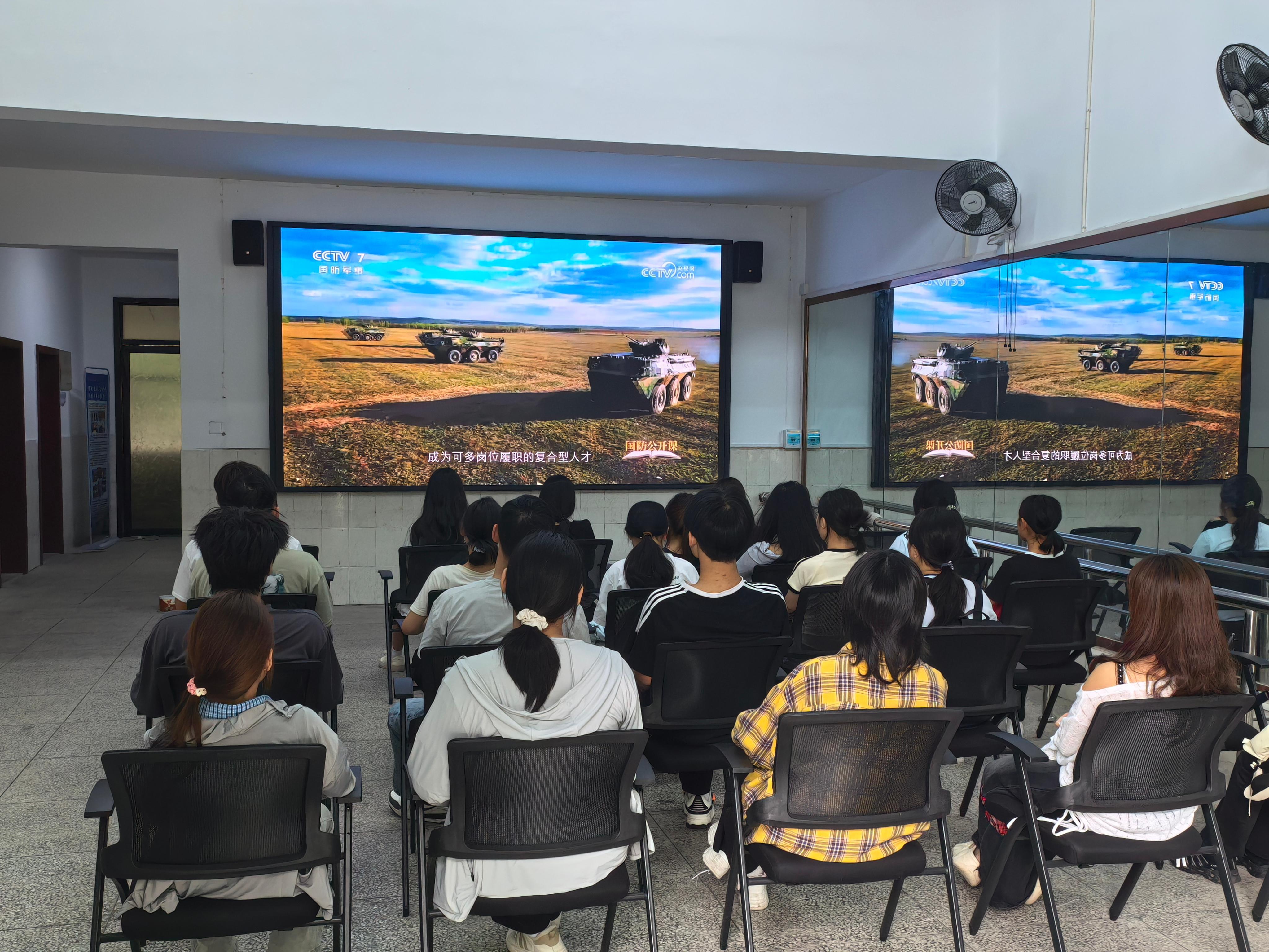 活动中,新生集中观看了2025年国防教育公开课,公开课围绕中国人民抗日战争暨世界反法西斯战争胜利80周年,以“铭记历史,共筑国防”为主题,通过国防故事讲述、国防知识普及、国防技能传授等,推动当代青年增强国防观念,强化忧患意识,依法履行国防义务。