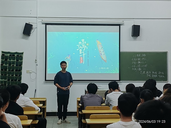 在端午节即将来临之际,学院于6月2日、3日晚,分年级召开了以“浓浓端午情 悠悠传承意”为主题的班会。此次活动旨在通过详细介绍端午节的来历和习俗,让学生亲身体验端午节的独特魅力,感受其深厚的文化内涵,从而激发学生的民族自豪感和爱国热情。