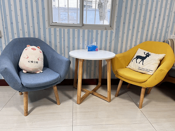 良好的办公条件:教师办公室1间,个体咨询和沙盘室1间,团体辅号室1间,宣泄室1间。心理咨询室位置安静、环境温馨,为学生提供了温馨舒适的咨询和活动条件。